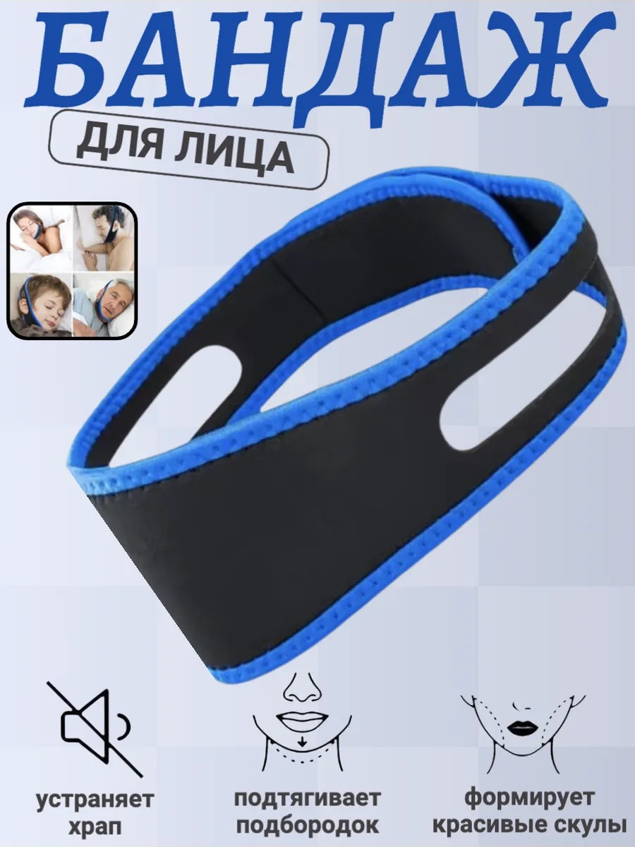 Повязка бандаж от храпа, антихрап, синяя